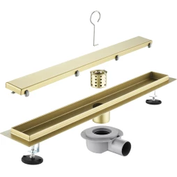 Душевой трап (лоток) Savol S-DL01C-40 40 см, с решеткой, 2 в 1 под плитку, золотой матовый
