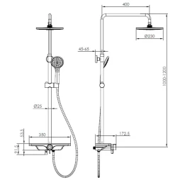 Душевой комплект AQUAme AQM8403CR 300 мм, с термостатом, хром