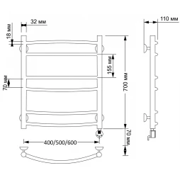Полотенцесушитель водяной 1200x530 Secado Модена 3 4603759401874