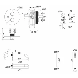 Душевая система Feramolli Sole S7119-10GB 250 мм, с термостатом, графит матовый