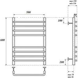 Полотенцесушитель водяной 1265x532 Secado Триест 4603777470494