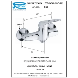 Remer — итальянский производитель сантехнической арматуры, смесителей и аксессуаров в ванную комнату. Компания образована в 1965 году в Милане. Сегодня представительства, где можно купить сантехнику Remer работают в 130 странах мира. Российский филиал с шоурумом расположен на востоке Москвы.