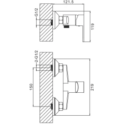 Смеситель для ванны Wonzon & Woghand Solo WW-639032-1-CR с душевым гарнитуром, хром