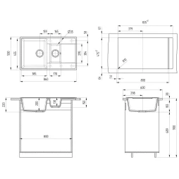 Кухонная мойка Ulgran Prima 860 1,5K-07 86x50 см, уголь