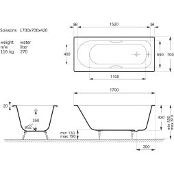 Акриловая ванна 190x90 см Alpen Tokata 17111