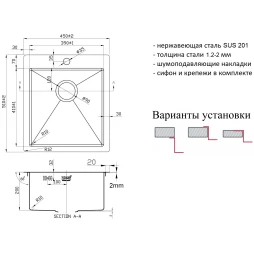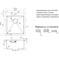 Ширина от: 45 x Ширина до: 45 x Тип: Кухонная мойка x