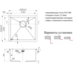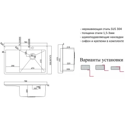 Ширина шкафа от: 50 x Ширина шкафа до: 50 x Тип: Кухонная мойка x
