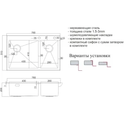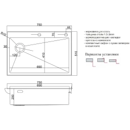 Тип: Кухонная мойка x Вид установки: В один уровень со столешницей x