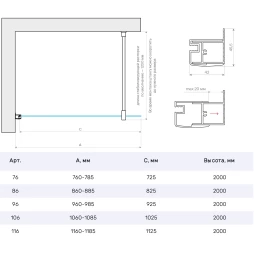 Душевой уголок 150x50 см Abber Schwarzer Diamant AG30150H-S50-S50 прозрачное