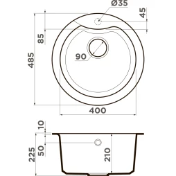 Тип: Кухонная мойка x Материал: Гранит x Форма: Круглая x