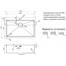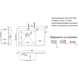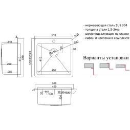 Тип: Кухонная мойка x Материал: Нержавеющая сталь x Цвет: Графит x Цвет: Графит матовый x Цвет: Графит/Белый x Цвет: Графит/Черный x Цвет: Нержавеющая сталь/Уголь x Цвет: Нержавеющая сталь/Черный x Цвет: Полированная сталь/Черный x Цвет: Черный x Цвет: Черный металлик x