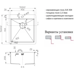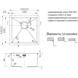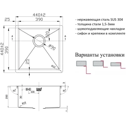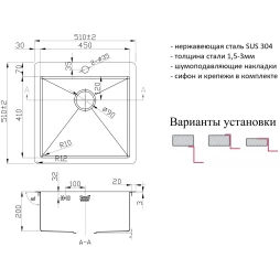 Тип: Кухонная мойка x Материал: Нержавеющая сталь x Форма: Квадратная x