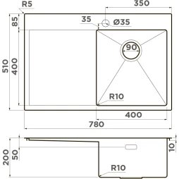 Тип: Кухонная мойка x Материал: Нержавеющая сталь x Вид установки: Встраиваемая сверху x Вид установки: Встраиваемая снизу x