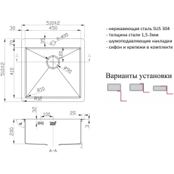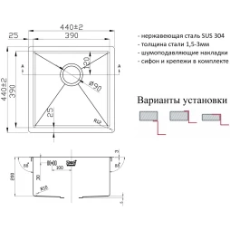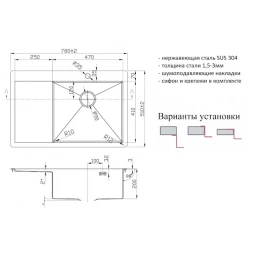 Производитель: Zorg x Тип: Кухонная мойка x Материал: Нержавеющая сталь x