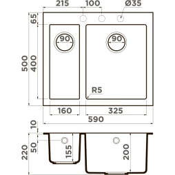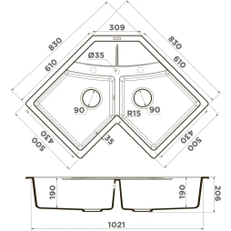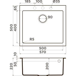 Тип: Кухонная мойка x Вид установки: В один уровень со столешницей x Вид установки: Встраиваемая сверху x