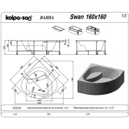Акриловая ванна Kolpa-San Swan 9923509 160x160 см, угловая, белый