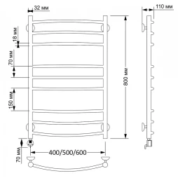 Типоразмер: 80x50 x Тип: Полотенцесушитель x Тип полотенцесушителя: Электрический x