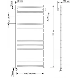 Тип: Полотенцесушитель x Тип полотенцесушителя: Электрический x Тип подключения: Левое x