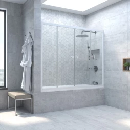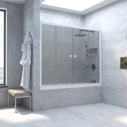 Тип: Шторка для ванны x Конструкция дверей: Раздвижная двухдверная x Конструкция дверей: Раздвижная однодверная x Конструкция дверей: Раздвижная трехэлементная x