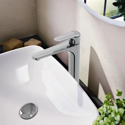 Для раковины-чаши в ванной комнате подходят высокие смесители с коротким изливом. Конструкция разработана специально для глубокой чаши относительно небольшого диаметра — вода падает в центр раковины, а высокий излив обеспечивает комфортное использование.