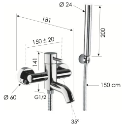 Длина излива до: 25 x Тип: Смеситель x Тип: Термостат x Назначение: Для ванны x Отверстие для монтажа: На два отверстия x Страна производства: Италия (ita) x