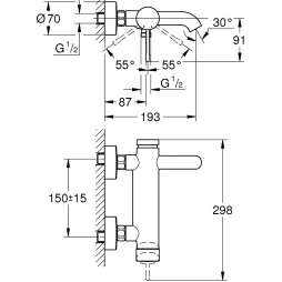 Длина излива до: 25 x Тип: Смеситель x Тип: Термостат x Назначение: Для ванны x Отверстие для монтажа: На два отверстия x Материал: Латунь x