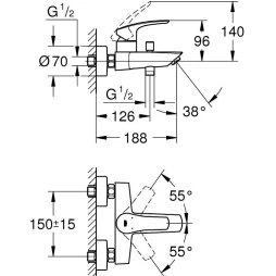 Длина излива до: 25 x Тип: Смеситель x Тип: Термостат x Назначение: Для ванны x Отверстие для монтажа: На два отверстия x Материал: Латунь x