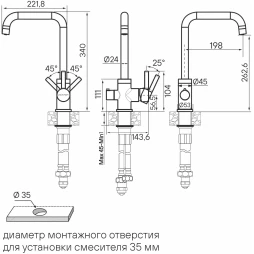 Тип: Смеситель x Тип: Термостат x Назначение: Для кухонной мойки x Тип переключателя: Керамический картридж x