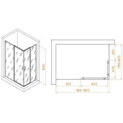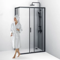 Типоразмер: 120x80 x Тип: Душевой уголок x Цвет профиля: Черный x Цвет профиля: Черный матовый x