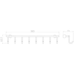 Планка с крючками Wonzon & Woghand WW-9382-8 для ванны, хром