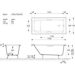 Глубина от: 45 x Тип: Ванна x Материал: Чугун x