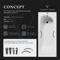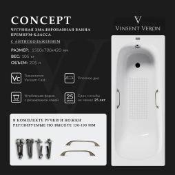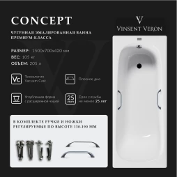 Тип: Ванна x Материал: Чугун x Оснащение: Ножки x
