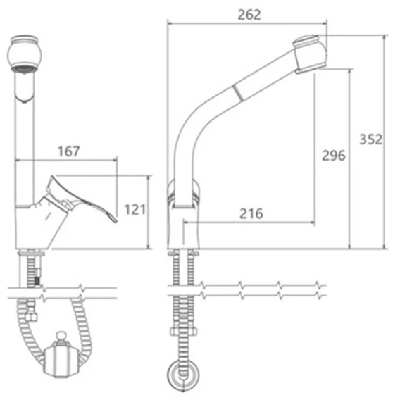 Крепление, Аэратор, Гибкая подводка, Душевой шланг, Душевая лейка