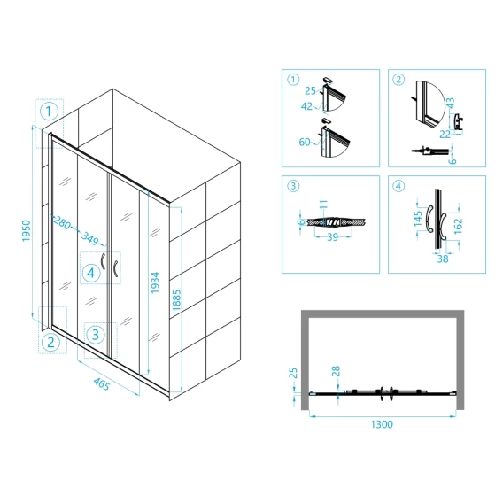 Размеры с диапазоном регулировок:1300-1350 мм
