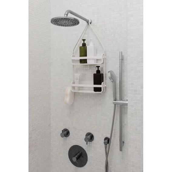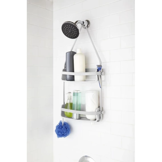 Удобный органайзер, который позволяет разместить максимум предметов на минимальном пространстве. Прочная основа выдерживает до 3,5 кг. В каждой полке предусмотрены отверстия, которые позволяют, перевернув флакон с гелем или шампунем, использовать его как диспенсер. Силиконовые ленты со специальными крючками позволяют повесить органайзер на крепление для душа или на штангу для занавески.Дизайн: Tom Chung