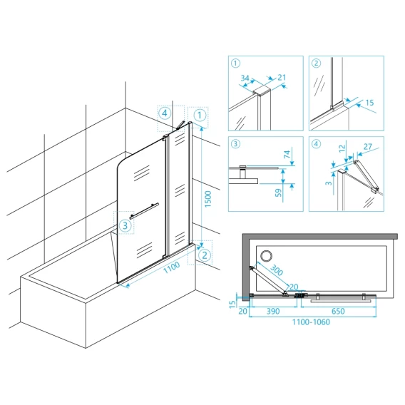 Шторка для ванны 110 см RGW SC-03 Screens 03110311-11 прозрачное