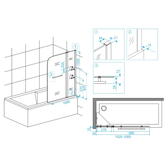 Шторка для ванны 100 см RGW SC-08 Screens 03110810-11 прозрачное