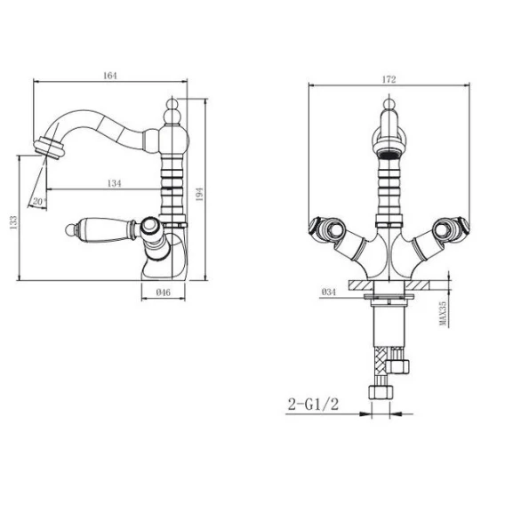Смеситель для раковины с донным клапаном Caprigo Adria Classic 03-526-vot