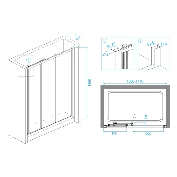 Размеры с диапазоном регулировок:1060-1110 мм