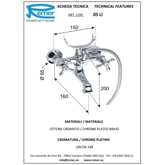 Кран для холодной воды без донного клапана Remer Liberty 51LICE