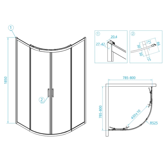 Размеры с диапазоном регулировок:(785-800)x(785-800) мм