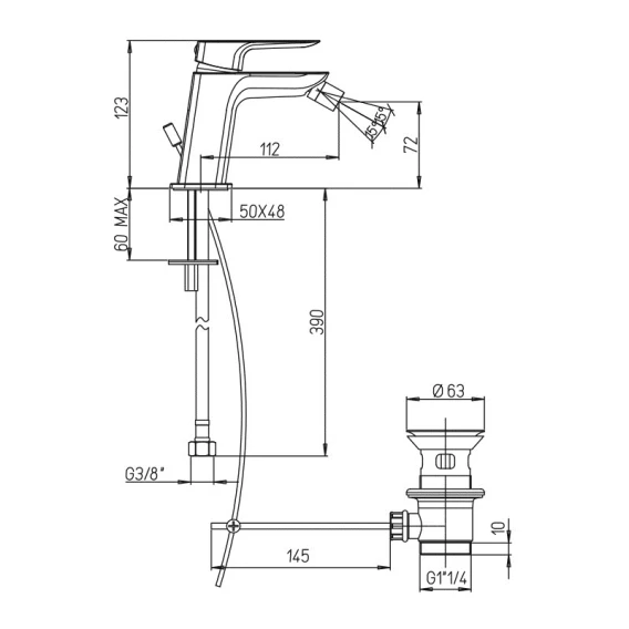 Смеситель для биде с донным клапаном Paini Nove 09CR306
