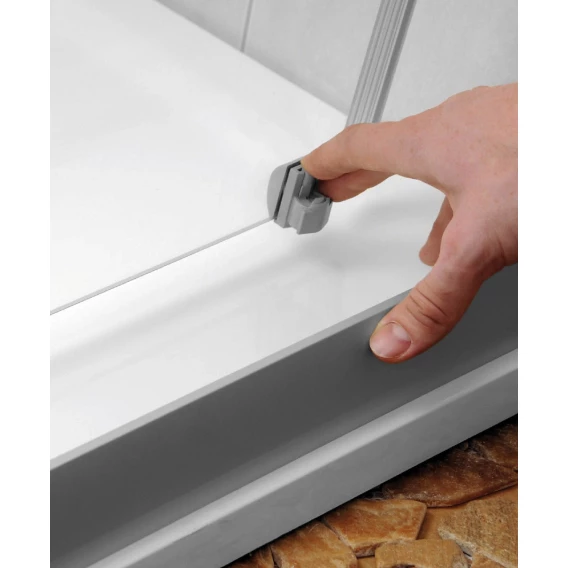 • Легким нажатием на механизм в нижней части раздвижных дверей створки можно отклонить или полностью вынуть, и таким образом убрать тяжело доступные места.