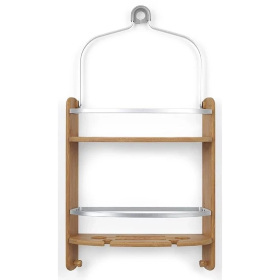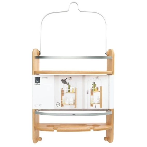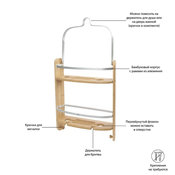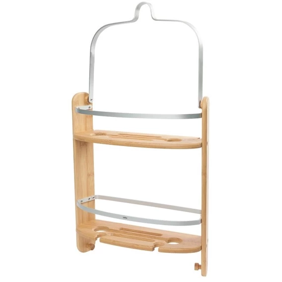 С вами случалось, что вы стоите под душем, в пене, и вдруг понимаете, что потеряли мочалку? Или шампунь или любую другую мелочь, которая лежит где-то в ванной. С таким гениальным органайзером всё будет под рукой. Две вместительные полочки, на которых помещаются даже очень большие бутылки с шампунями и гелями. В каждой предусмотрены отверстия, чтобы перевернув пузырек вверх ногами, вы использовали его как диспенсер. В нижней полке есть специальные отверстия для хранения бритвенных станков. Два крючка снизу, чтобы повесить мочалки.Прочная основа из бамбука удерживает большой вес, а металлический держатель со специальным силиконовым крючком позволит повесить органайзер на крепление для душа или штангу для шторки в ванной.Дизайнеры Anthony Keeler & Martin Luu