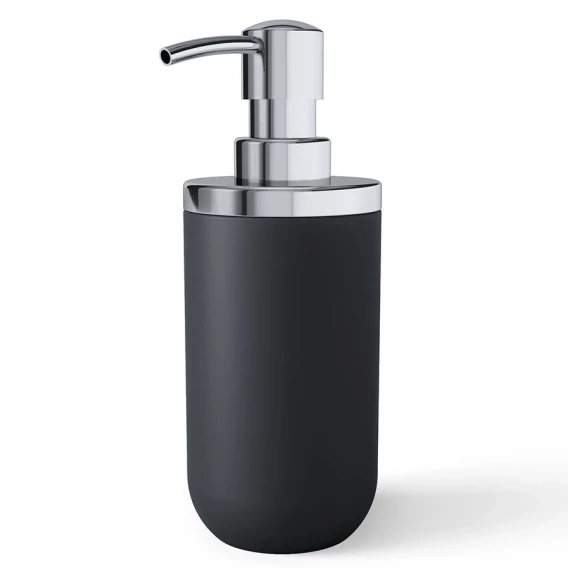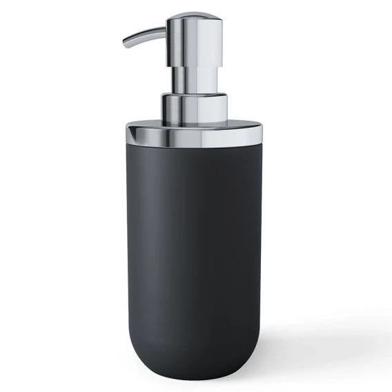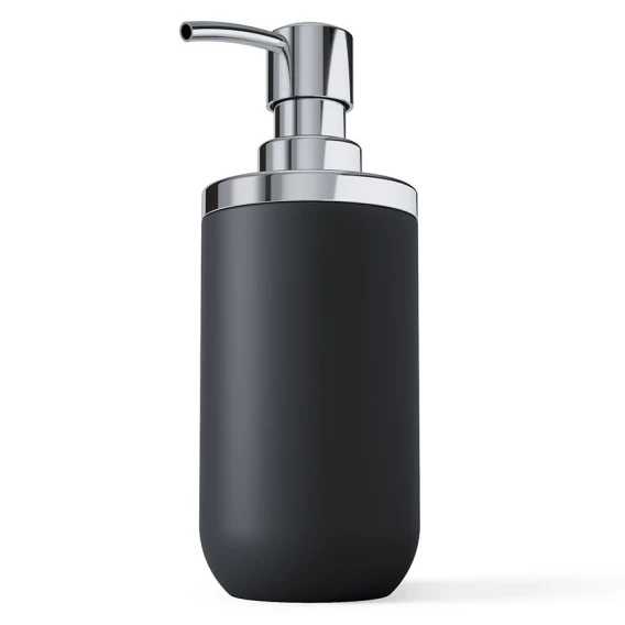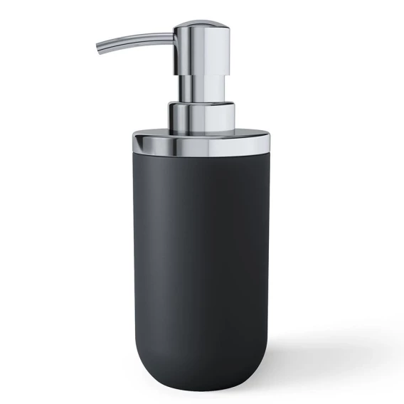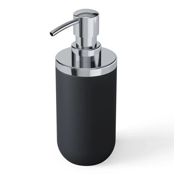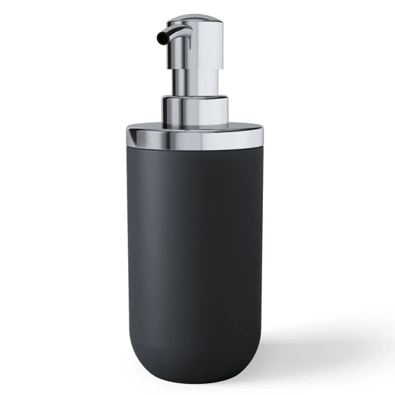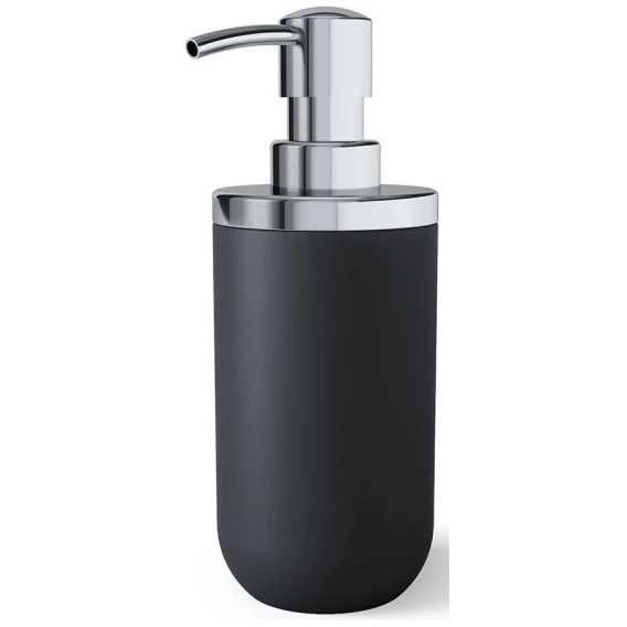 Диспенсер для мыла Junip может стать украшением как ванной комнаты, так и кухни. Емкость представлена в утонченном дизайне, которому свойственны плавные линии и черная матовая поверхность. Благодаря эргономичной крышке серебристого цвета, которую легко откручивать и закручивать, заправка диспенсера не вызывает затруднений и может быть выполнена за считанные минуты. Емкость из синтетической смолы отличается высокой прочностью и стойкостью к повреждениям. Аксессуар дополнит современный интерьер помещения. Диспенсер для жидкого мыла гармонично сочетается с другими аксессуарами коллекций Junip и Droplet.Дизайн: Eugenie De LoynesОбъем диспенсера: 283 мл