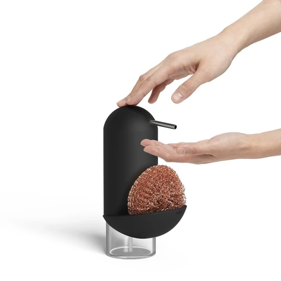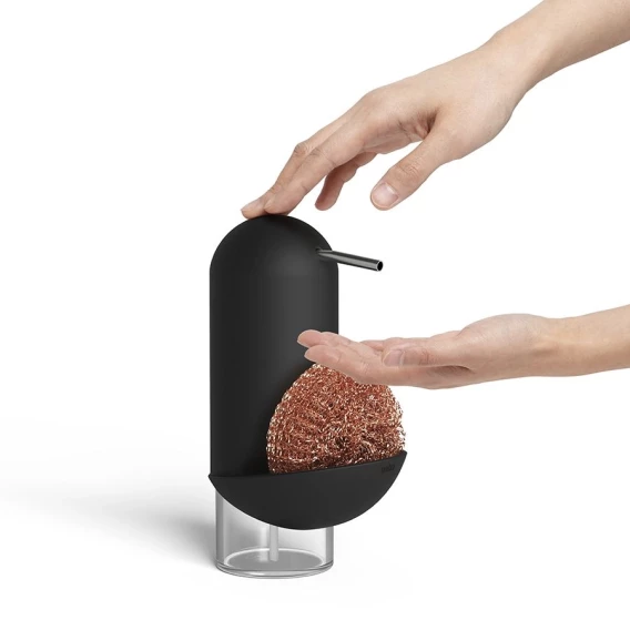 Функциональный предмет 2-в-1: диспенсер для жидкого мыла с органайзером для хранения губки. Благодаря органайзеру губка для посуды быстрее высыхает и никаких болезнетворных бактерий на вашей кухне! Объем диспенсера 355 млДизайн Umbra Studio