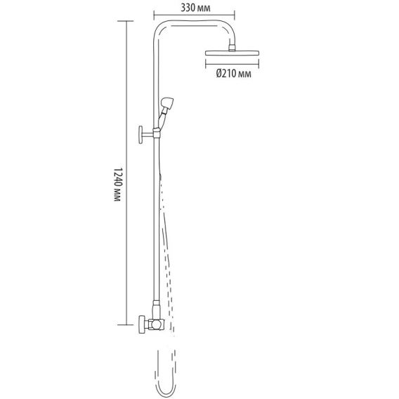Металлическая розетка, Эксцентрики, Душевой шланг, Душевая лейка, Держатель для душевой лейки, Верхний душ, Смеситель, Кронштейн, Штанга душевая