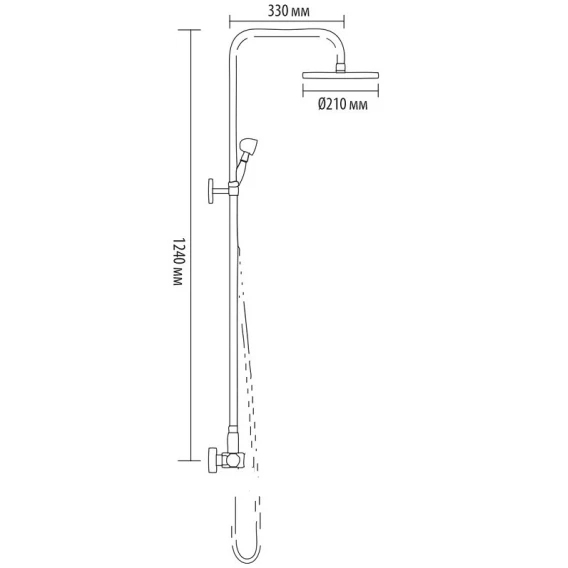 Металлическая розетка, Эксцентрики, Душевой шланг, Душевая лейка, Держатель для душевой лейки, Верхний душ, Смеситель, Кронштейн, Штанга душевая