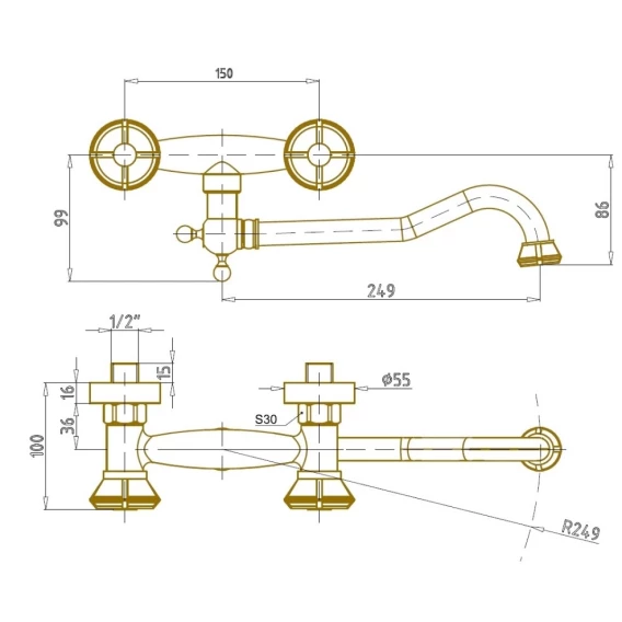 Смеситель для ванны Bronze De Luxe Royal 10119D