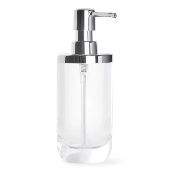 Диспенсер для мыла Junip может стать украшением как ванной комнаты, так и кухни. Емкость представлена в утонченном дизайне, которому свойственны плавные линии и глянцевая поверхность. Благодаря эргономичной крышке серебристого цвета, которую легко откручивать и закручивать, заправка диспенсера не вызывает затруднений и может быть выполнена за считанные минуты. Для изготовления емкости используется прозрачный акрил. Аксессуар дополнит современный интерьер помещения. Диспенсер для жидкого мыла гармонично сочетается с другими аксессуарами коллекций Junip и Droplet.Дизайн: Eugenie De LoynesОбъем диспенсера: 283 мл